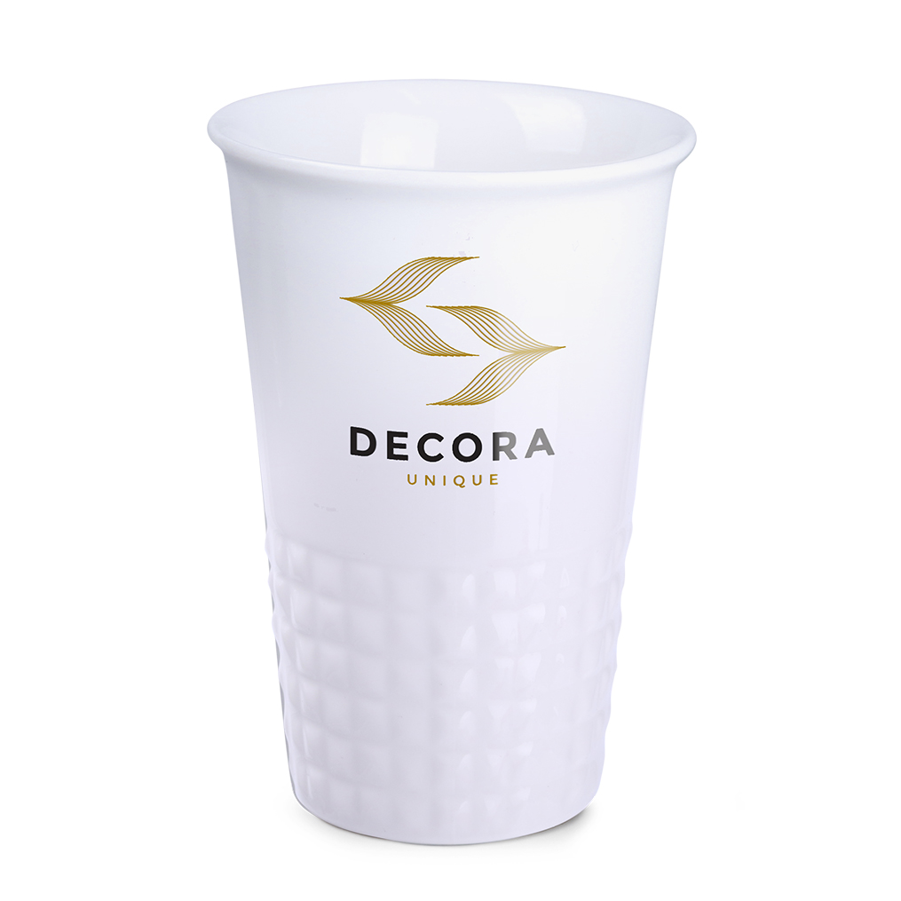 Subtelne wykończenie dolnej części kubka w formie symetrycznych wypustek. Porcelanowy kubek dwuścienny, zapewniający doskonałą izolację ciepła.