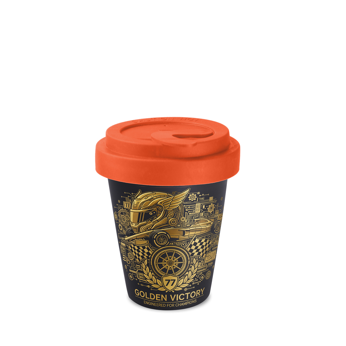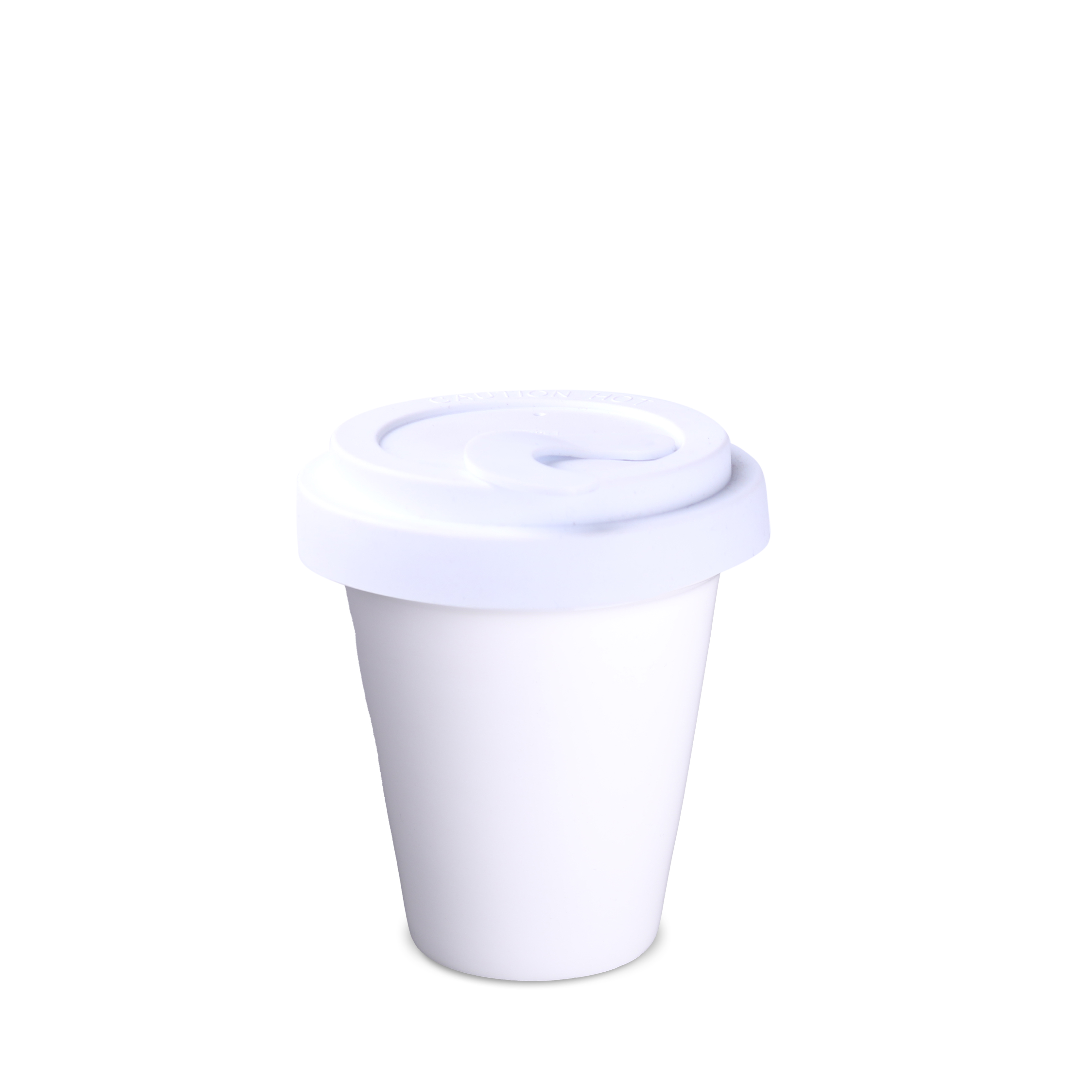 Praktyczny kubek porcelanowy z polimerową przykrywką z zatyczką, chroniącą przed przypadkowym rozlaniem napoju. Dzięki rzadko spotykanej, wewnętrznej strukturze podwójnych ścianek z porcelany kubek ten charakteryzuje się podwyższonym poziomem izolacji termicznej. Korpus kubka dostępny w kolorze białym i satin black. Przykrywka dostępna w następujących kolorach: biały, pomarańczowy 021C, szary Cool Gray 7, granatowy 294C, brązowy 4695C, czarny, różowy 4064C, niebieski 2144C, eucalyptus 5493C, desert sand 2310C